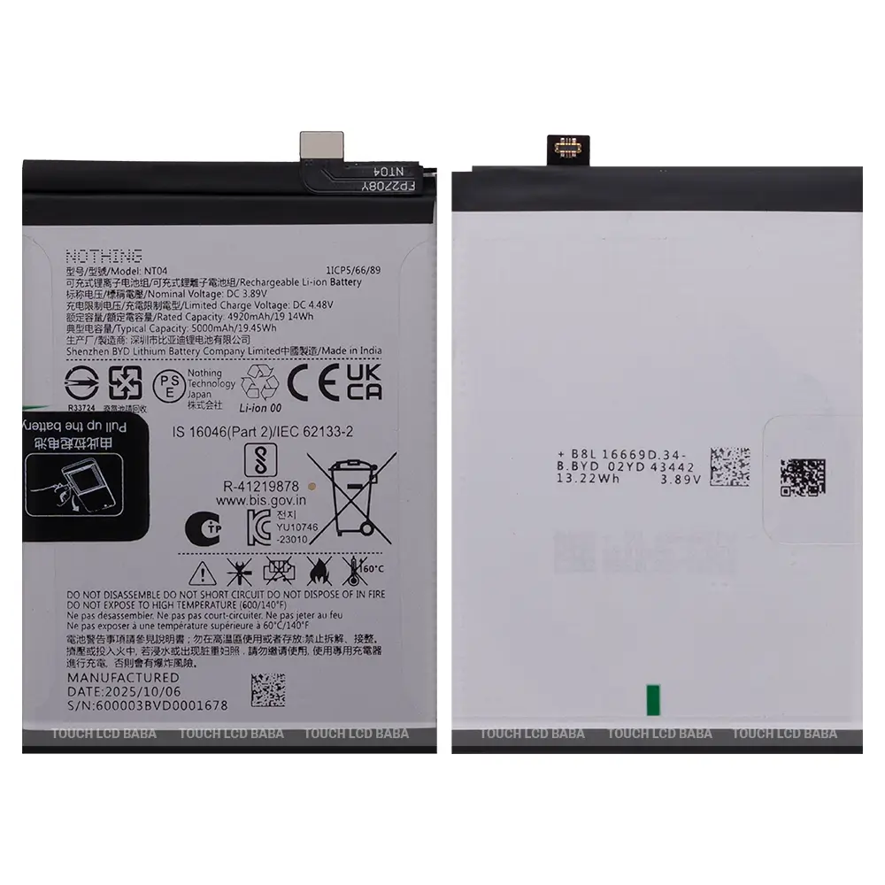 If your Nothing CMF Phone 2 Pro battery doesn’t charge properly or drains quickly, it’s depleted. You can purchase a 100% original replacement battery (OEM) for the Nothing CMF Phone 2 Pro from Touch LCD Baba to easily resolve the battery issues you’re facing. For questions, please get in touch with us at 987954273.